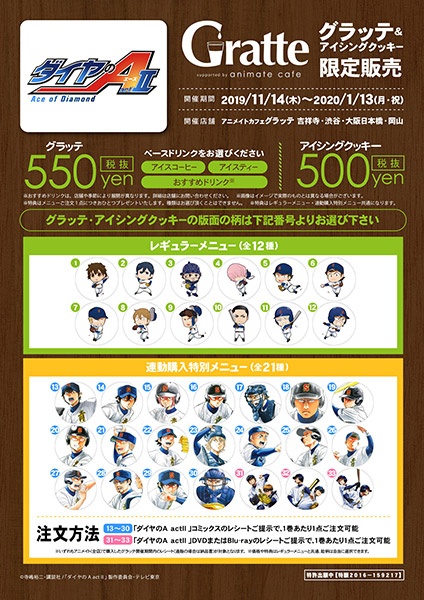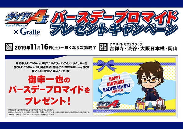 「ダイヤのA actⅡ」×グラッテ 11月14日(木)コラボが開催決定!