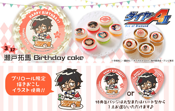 キャラクタープリントケーキの「プリロール」より、 『ダイヤのA actⅡ』瀬戸拓馬バースデー記念商品が販売開始いたしました。