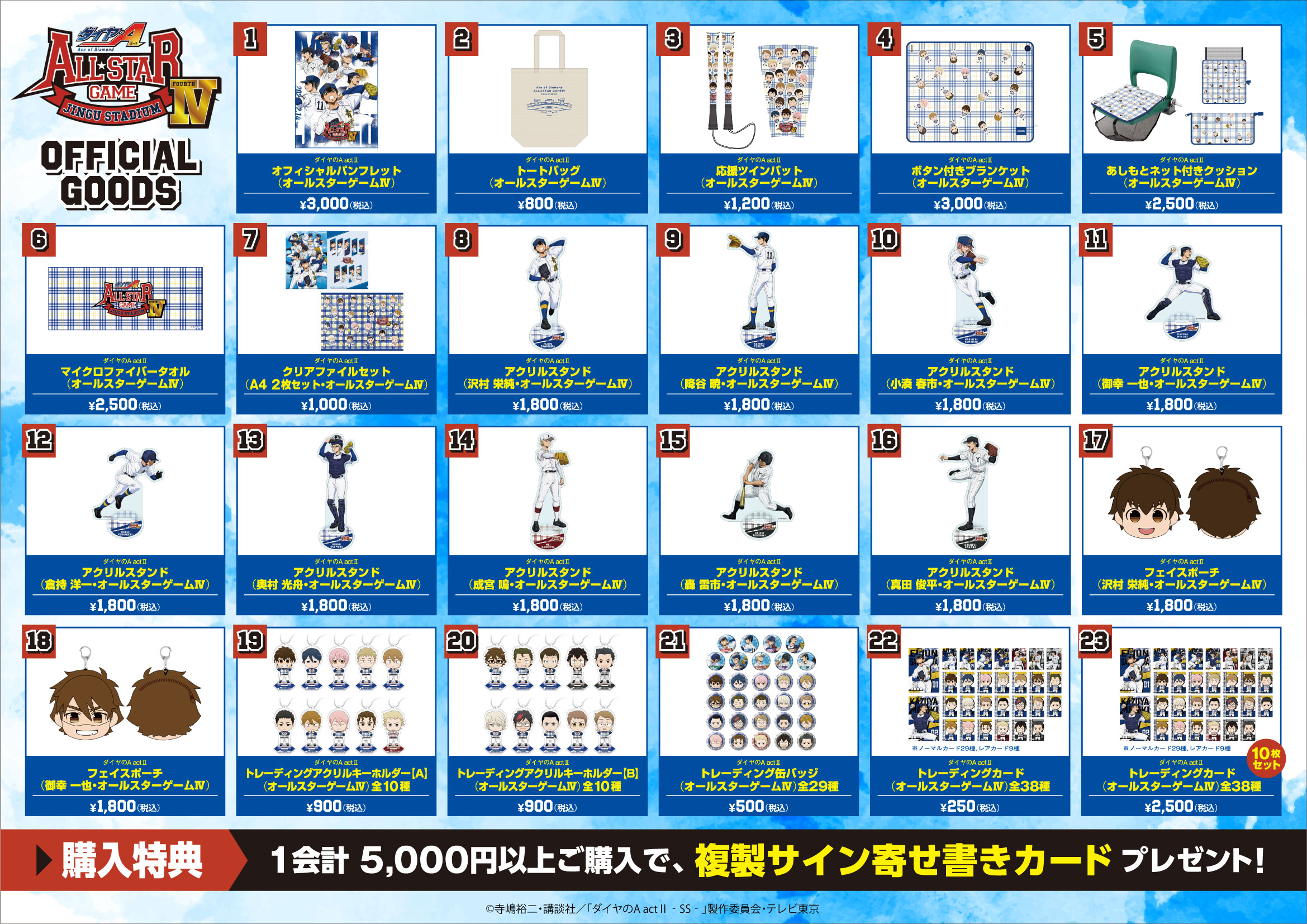 「ダイヤのAオールスターゲームⅣ」商品を【5,000円(税込)】以上含む1会計に付き1枚、複製サイン寄せ書きカードをプレゼントいたします。